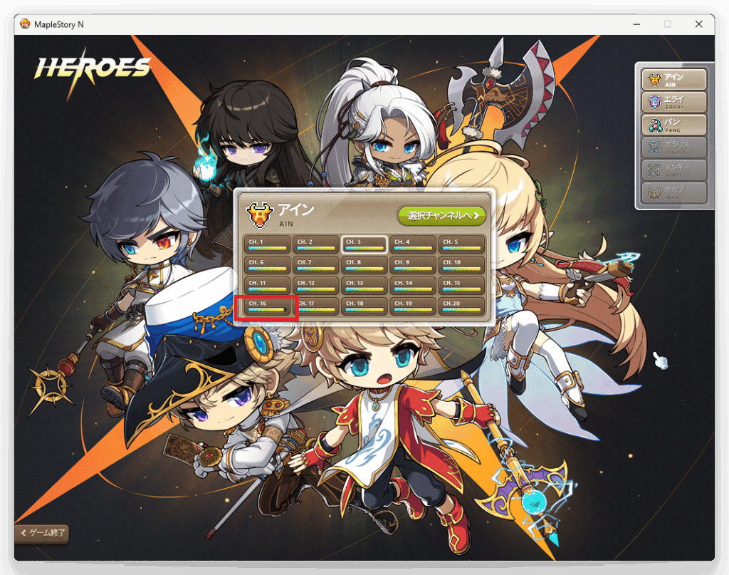 チャンネルはプレイ中にいくらでも変更できるのでどこを選択しても大丈夫です。