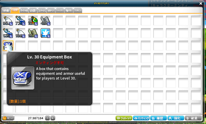 - 二次転職と同時に支給される装備ボックスを必ず装備